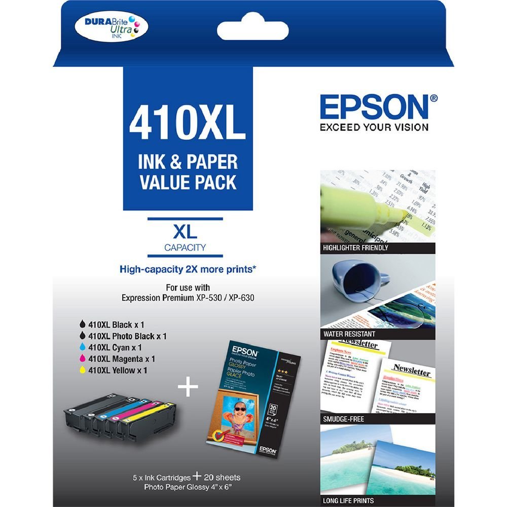 Transform your printing experience with the Epson 410XL Original Value Pack, designed to provide exceptional results for both home and office use. Featuring 5 high-quality ink cartridges and 20 sheets of premium photo paper, this bundle ensures vibrant colors and sharp detail with every print. Whether you’re crafting important documents or capturing memories in stunning photographs, the Epson 410XL exceeds expectations, all while being budget-friendly.